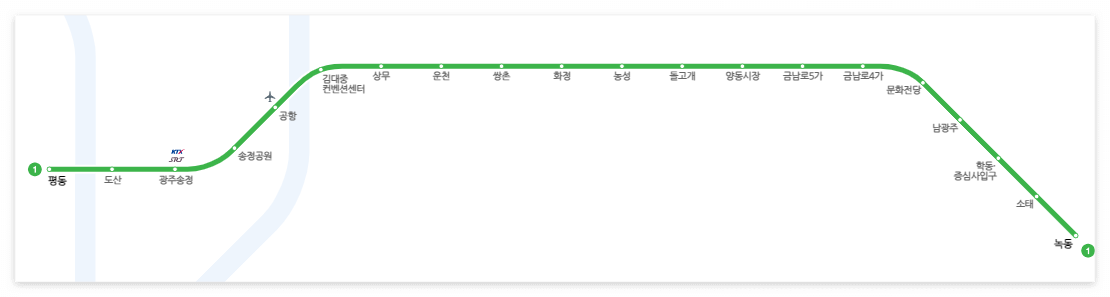 광주지하철 1호선 노선도